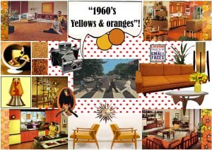 We were asked to create a presentation board focusing on a colour palette from that time-period. Th exploration project was super fun. It gave me the opportunity to portray the daring and intense colour preferences of this era throughout the presentation. I have always been drawn to the 1960’s period from the interiors, colour palettes and fashion so I found this task really enjoyable. This also gave me the opportunity of being bolder in my presentation choices.