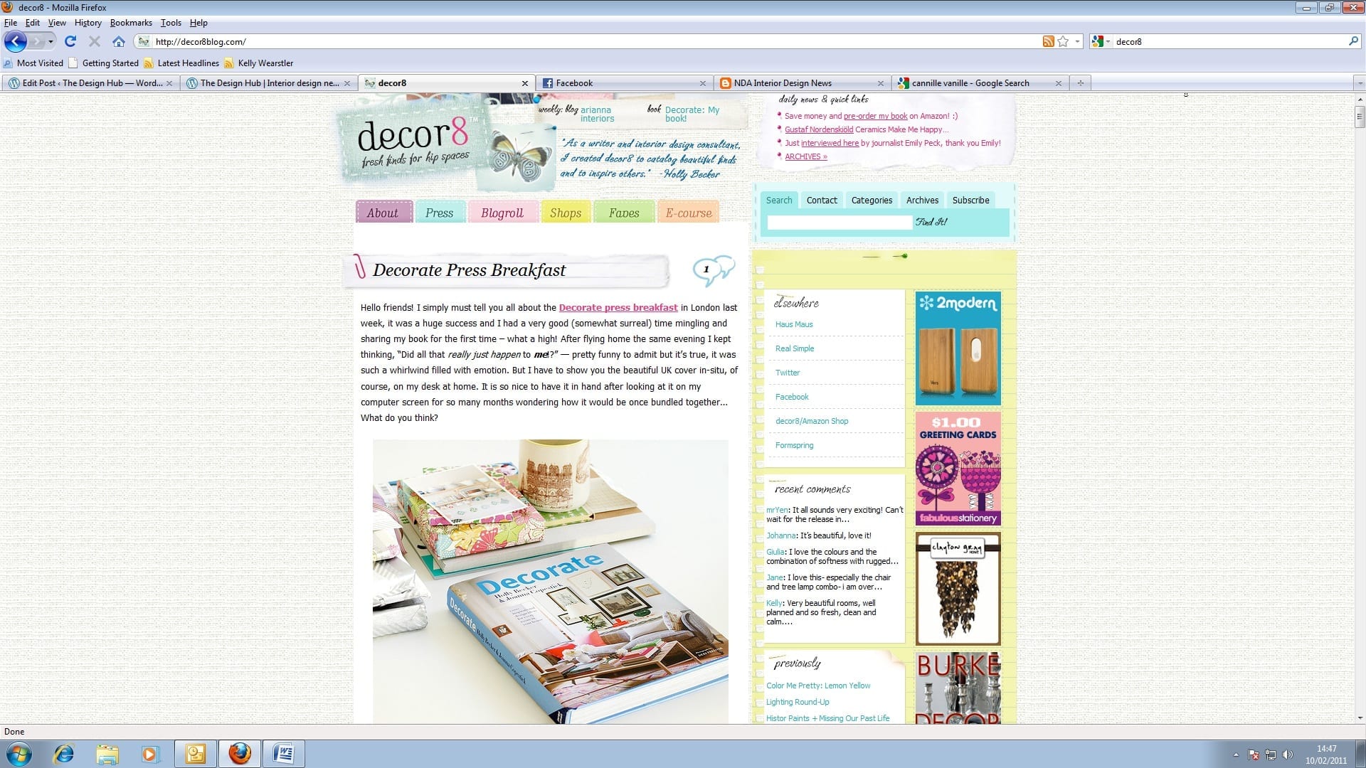 The National Design Academy specialise in Interior Design distance learning courses and cover all aspects of design news and updates on their blog