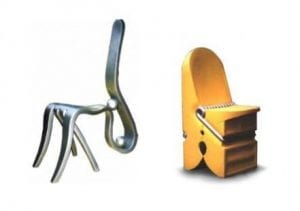 These two objects are the Fork Chair and the Peg Chair by Finn Stone.